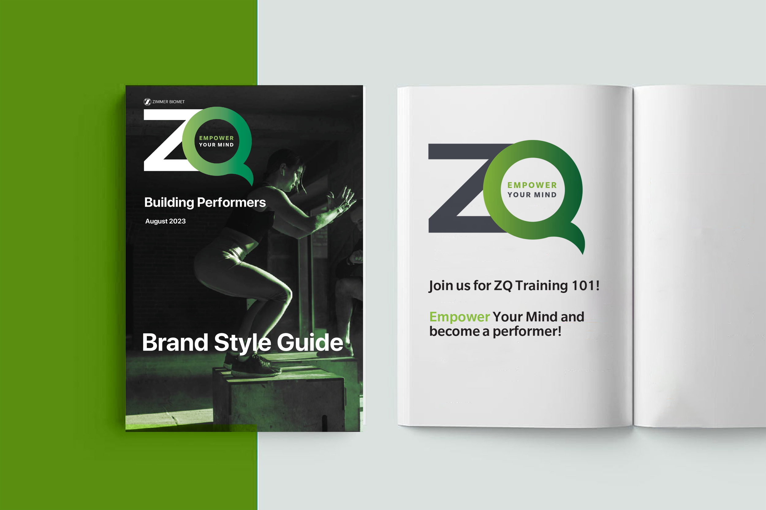 The ZQ brand was created by combining the concept of IQ and EQ. We designed a modern and engaging logo leveraging Zimmer Biomet’s complimentary brand colors.